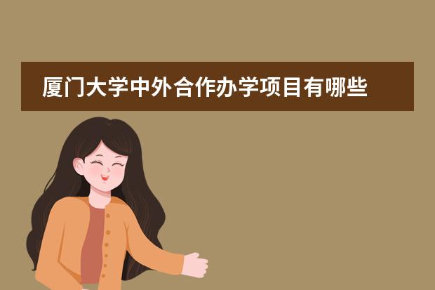 厦门大学的中外合作办学项目有哪些?看上去,厦门大学的中外办学项目比福建的其他一些大学要高大上一些,对成绩的要求也较高,普遍要求是 高考 成绩在本科线以上,另外,对英语成绩有特别的要求,这是厦门大学中外合作办学项目区别于其他大学的重要地方。那么厦门大学有什么中外合作办学项目呢?下面跟我一起来看看详细介绍吧!厦门大学由著名爱国华侨领袖陈嘉庚先生于1921年创办,是中国近代教育史上第一所华侨创办的大学,也是国家“211工程”和“985工程”重点建设的高水平大学,有着“南方之强”的美誉。