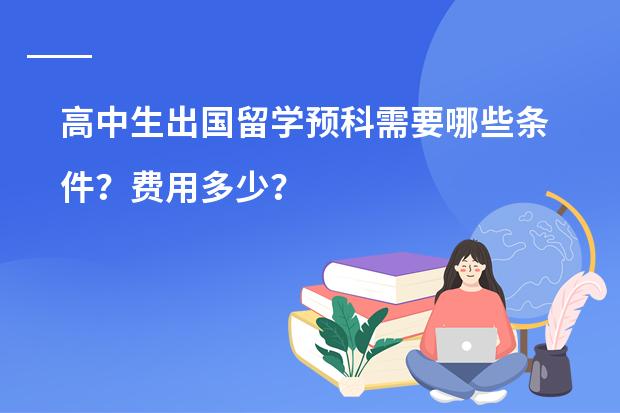 高中生出国留学预科的条件一般都需要:高中毕业证书;成绩在380分以上; 身体健康,有较好英语基础;年满18周岁; 关于费用问题首先要看你去哪个国家留学再者还要看你选择的学校,一般一年的学费和生活费在10W-50W这要根据你的个人情况来定,我朋友在上外上的预科他们是国家基金委合作的TUFC项目,还不错,希望对你也有所帮助!为什么艺术类留学的中介费用高呢?