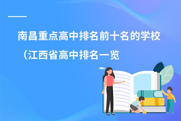 南昌重点高中排名前十名的学校分别有南昌县莲塘一中、南昌二中、南昌市第三中学、南昌市第十九中学、江西科技学院附属中学、江西省新建区第二中学、南昌一中、南昌市外国语学校、南昌大学附属中学、江西师范大学附中