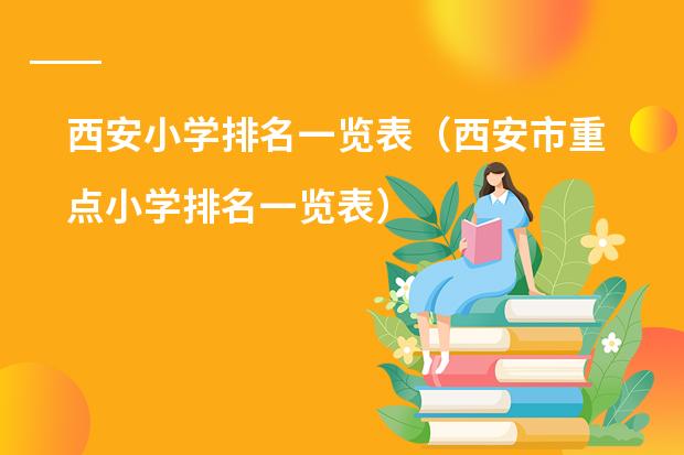 西安小学前十名有西安高新第一小学、西北工业大学附属小学、陕西师范大学附属小学、西安交通大学附属小学、西安小学、后宰门小学、大雁塔小学、西安市实验小学、西安育英小学、西北大学附属小学。西北工业大学附属小学成立于1952年,位于西北工业大学校园内。六十二年的办学历史,成就了附小丰厚的文化底蕴和鲜明的办学特色。西北工业大学附属小学成立于1952年,位于西北工业大学校园内。六十二年的办学历史,成就了附小丰厚的文化底蕴和鲜明的办学特色。
