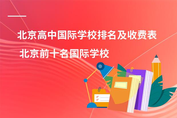 京国际学校排名第一名,朝阳凯文学校,第二名,北京海淀凯文学校第三名,青苗国际学校,第四名,君诚国际学校,第五名,北京朝阳赫德双语学校,第六名,北京市私立树人瑞贝学校,第七名,启明星双语学校,第八名,中关村外国语学校,第九名,诺德安达国际学校, 第十名,北京外国语大学国际高中。