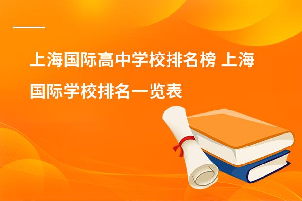 上海国际高中学校有:上海包玉刚实验学校、上海市世界外国语中学、上海市民办平和学校、领科教育上海校区、光华启迪、上海七宝德怀特高级中学、WLSA上海学校。