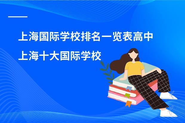 上海国际高中学校有:上海包玉刚实验学校、上海市世界外国语中学、上海市民办平和学校、领科教育上海校区、光华启迪、上海七宝德怀特高级中学、WLSA上海学校。
